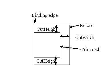 CutHeight and CutWidth specify the amount of paper that must be cut off the book after folding. If one-way trimming is requested, the oce:CutHeight must not be used. The oce:CutHeight parameter specifies the amount to cut both on top and on bottom. The total amount that is cut in the height direction, is 2 x oce:CutHeight.