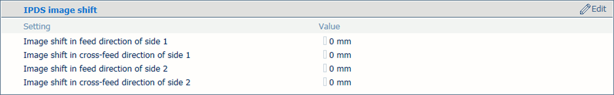 [Image shift in feed direction of side 1] [Image shift in cross-feed direction of side 1] |