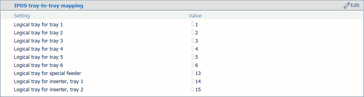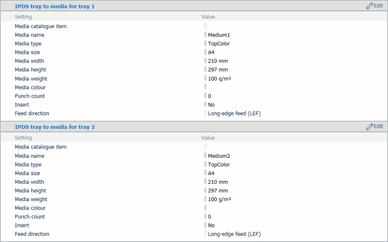 For both tray mapping modes physical trays that contain the same media are automatically linked. This means that when the referred tray is empty, printing continues from an other tray that holds the same media.