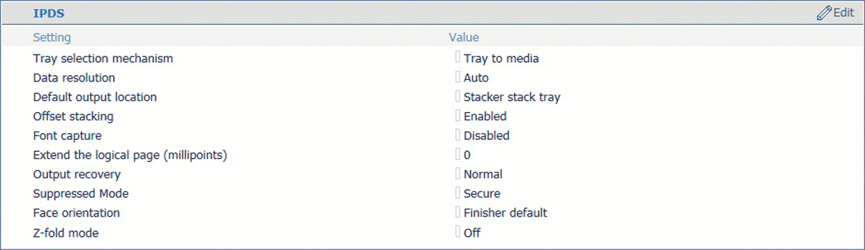 When the output location is not indicated in the data stream, the printer uses this default value. |