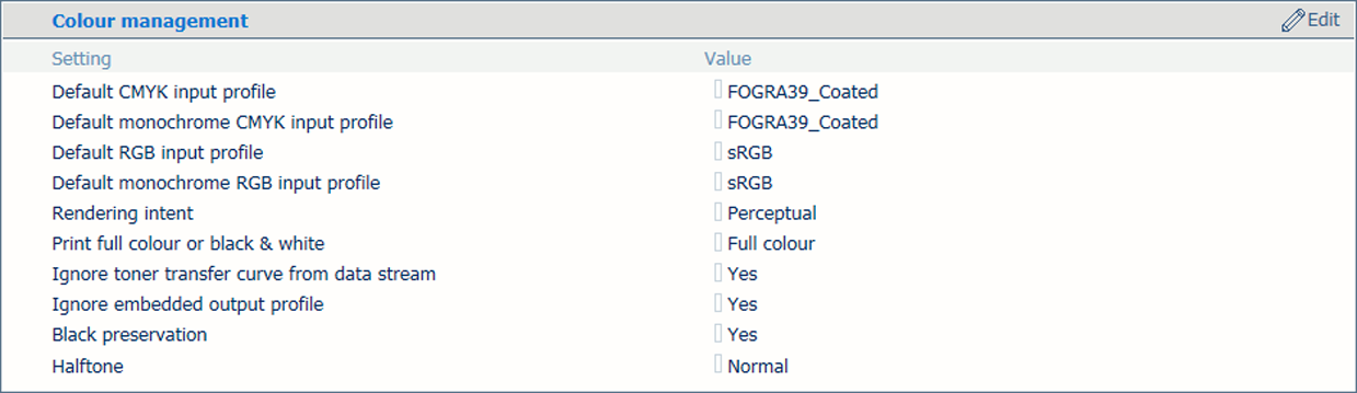 The selected default rendering intent is only used for jobs where no rendering intents and input profiles are specified. |
