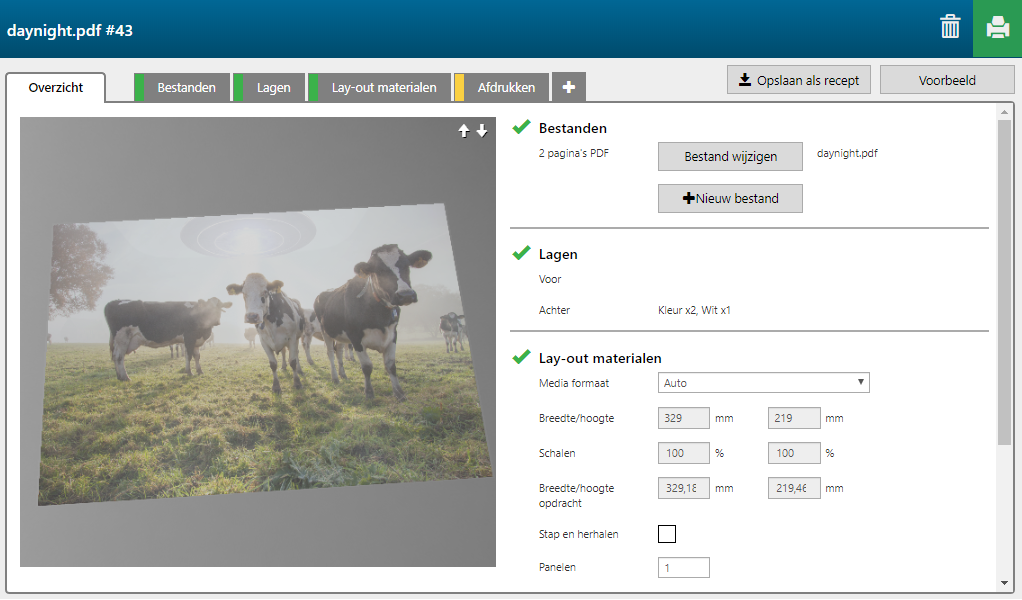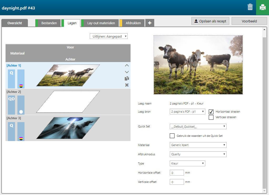 Het recept 'Day/night switch' bevat 3 lagen die op de achterzijde van het materiaal zijn geprint.