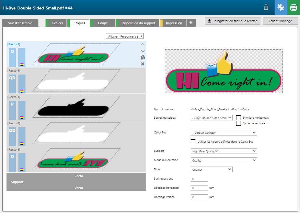 Sous Self-adhesive vinyl (Vinyle autocollant), vous trouverez votre travail parmi d'autres en attente d'imbrication.
