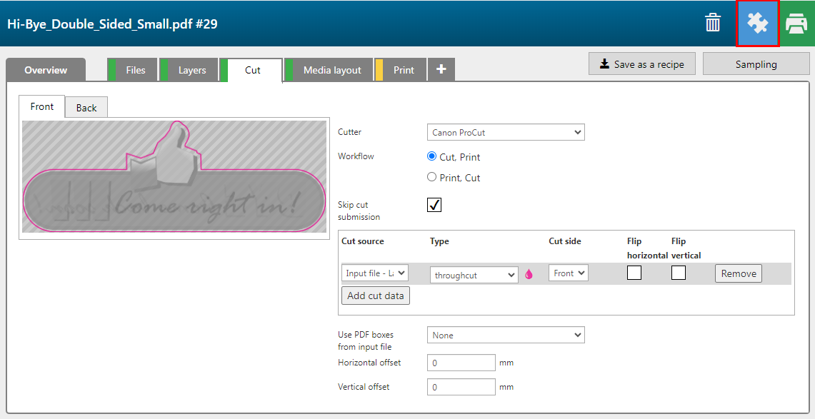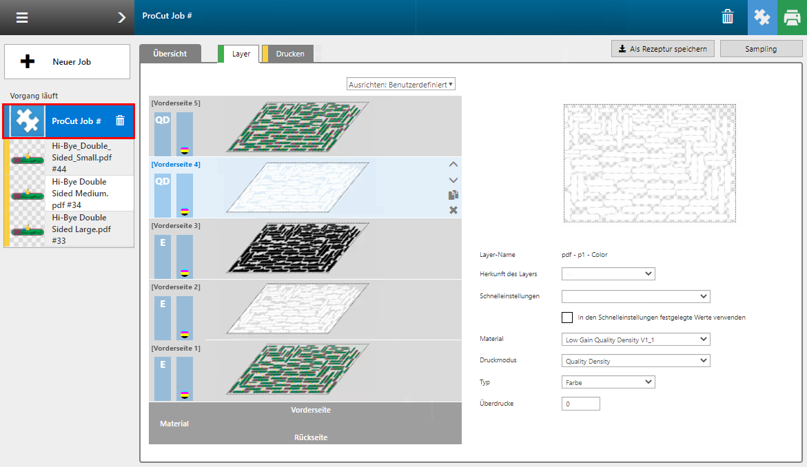 Stellen Sie sicher, dass die Rezeptur auf den ProCut-Auftrag angewendet wird.