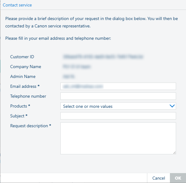 La boîte de dialogue ci-dessous permet d'envoyer un message électronique à l'adresse e-mail désignée comme étant celle de votre technicien de service.