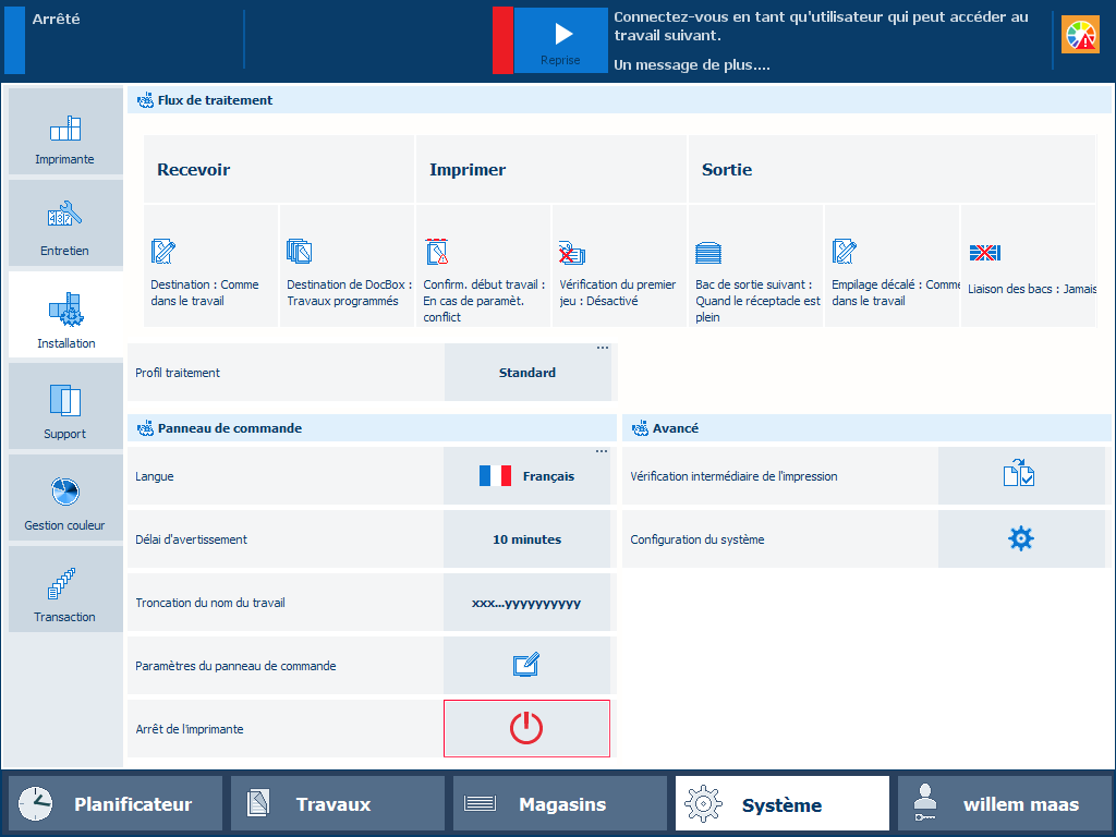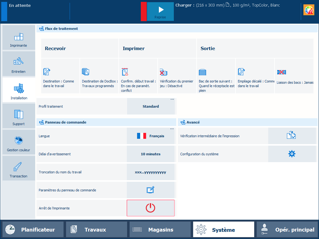 Le compte utilisateur personnalisé est connectéVotre organisation peut utiliser des cartes à puce PKI ou NFC pour identifier des utilisateurs de l’imprimante. Une seule carte à puce peut être utilisée pour l’authentification d’un ou de plusieurs comptes utilisateur. Les informations d’identification de compte utilisateur sont configurées sur un serveur d’annuaire LDAP.