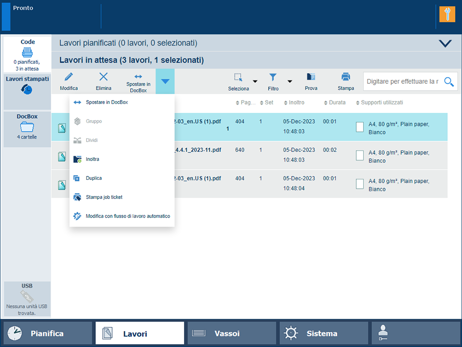 Quando si sceglie un flusso di lavoro automatico predefinito e si ignora il job ticket = disattivato, la priorità delle impostazioni del ticket è più alta. Esempio: ticket dispone del supporto A3, flusso di lavoro automatico dispone del supporto A4 => risultato supporto A3