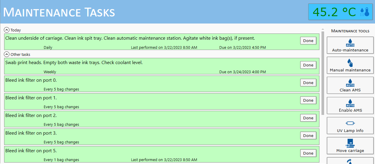 Daugeliu atvejų neveikiantis antgalis yra laikinas ir turėtų būti išspręstas Sauso spausdinimo galvutės šluostymo procedūra ir (arba) taikant standartinę AMS procedūrą. Sausuoju šluostymu nuo antgalio plokštelės pašalinamos šiukšlės, o naudojant standartinį AMS šalinamas antgalio kanale įstrigęs oras.