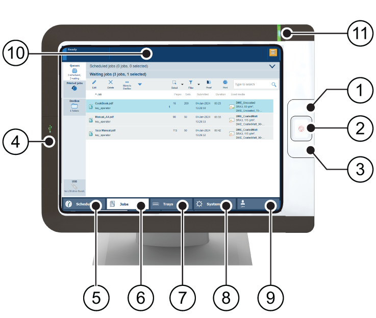 De nombreuses instructions dans ce guide d’utilisation expliquent la modification des travaux et la gestion des travaux à partir du panneau de commande.