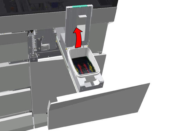 Öppna underhållsfacket väldigt försiktigt så att bläck inte stänker och spills.