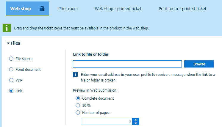 4. Povolte možnost [Odkaz] v části [Soubory]. Část [Soubory] je dostupná v zobrazení [Internetový obchod].