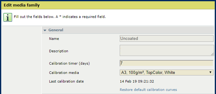 Clique em [Restaurar as curvas de calibragem predefinidas].