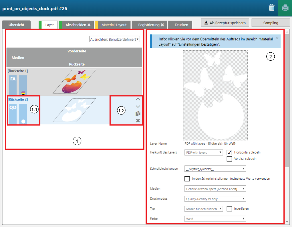 Seite der PDF-Datei oder Layer innerhalb des Designs auf einer bestimmten Seite |
