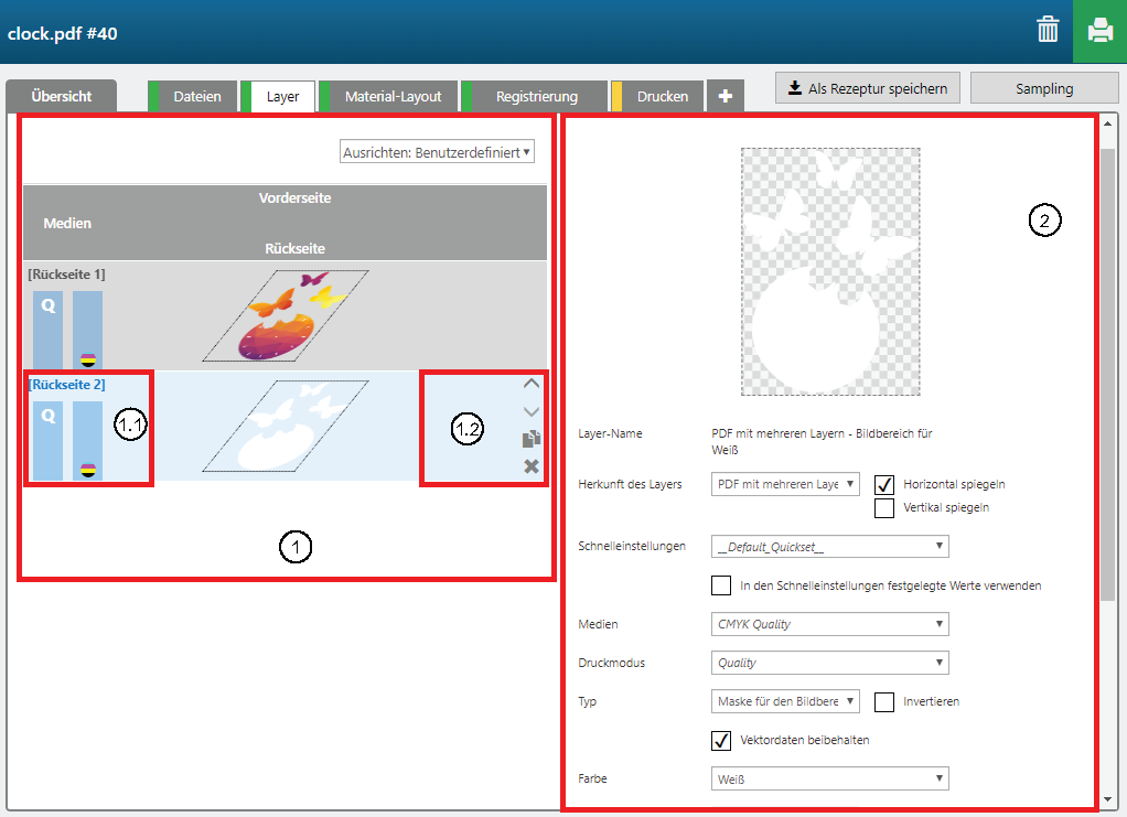 Seite der PDF-Datei oder Layer innerhalb des Designs auf einer bestimmten Seite |