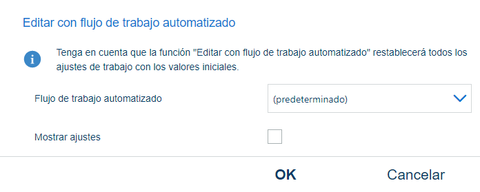 Tenga en cuenta que la función [Editar con flujo de trabajo automatizado] restablecerá todos los ajustes de trabajo con los valores iniciales.