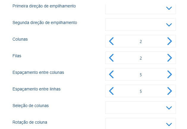 Selecione o número de colunas. |