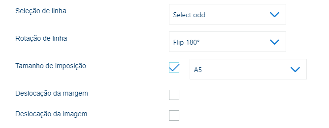 Utilize esta definição para rodar a imposição em 180 graus. |