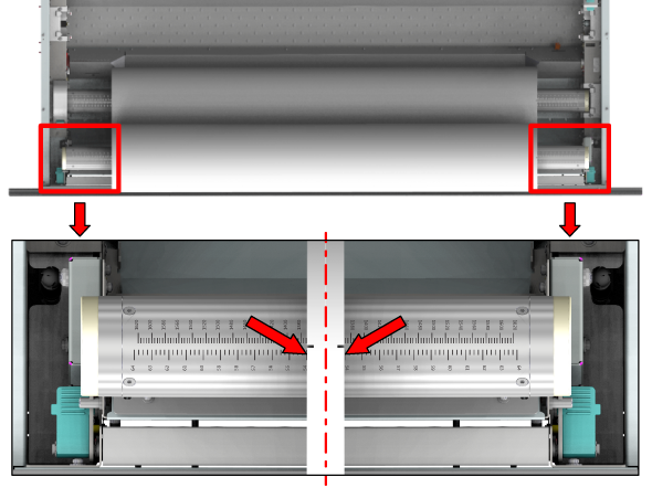 若要使用張力桿捲紙或固定張力桿捲紙,系統就會忽略勻稱裁切設定。
