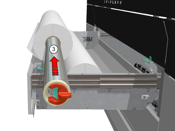 將紙軸(3)推到新紙張滾筒筒芯的那一側。