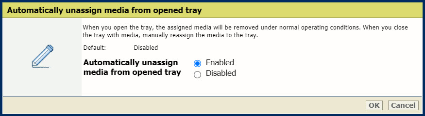To validate media assignment and reduce the number of operator errors, there is a possibility to automatically unassign media when you open the tray. If this setting is enabled, you need to manually reassign media to the tray after you close the tray. That way, you can ensure that the correct media is assigned to the tray.