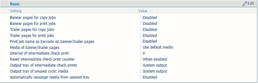 Section [De base] Utilisez le paramètre [Annuler automatiquement l'attribution du support du bac ouvert] pour indiquer si vous souhaitez que le support soit désaffecté lorsque le bac est ouvert. Par défaut, ce paramètre est désactivé.