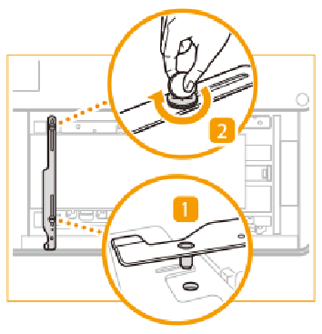 Coloque o suporte de fixação com o pino de fixação no orifício indicado (1) e aperte o parafuso posterior (2). |