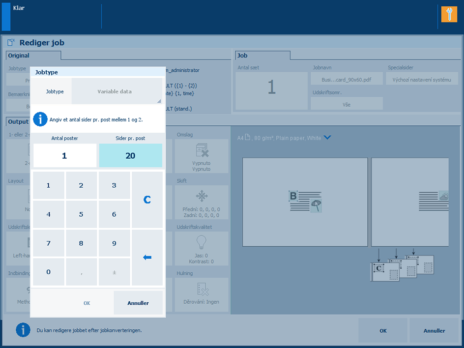 Angiv jobbets strukturEfter konverteringen kan du foretage jobindstillingerne og udskrive jobbet med de variable data.