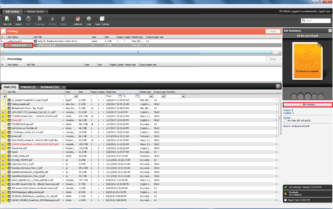 Vyberte úlohu a klepněte na tlačítko Nastavení služby JDF..., které je umístěno vpravo na panelu.