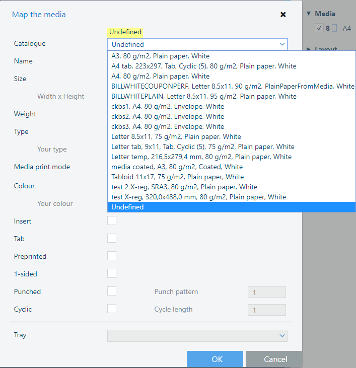 Le support est ajouté au catalogue de papier avec le nom « Non défini ».