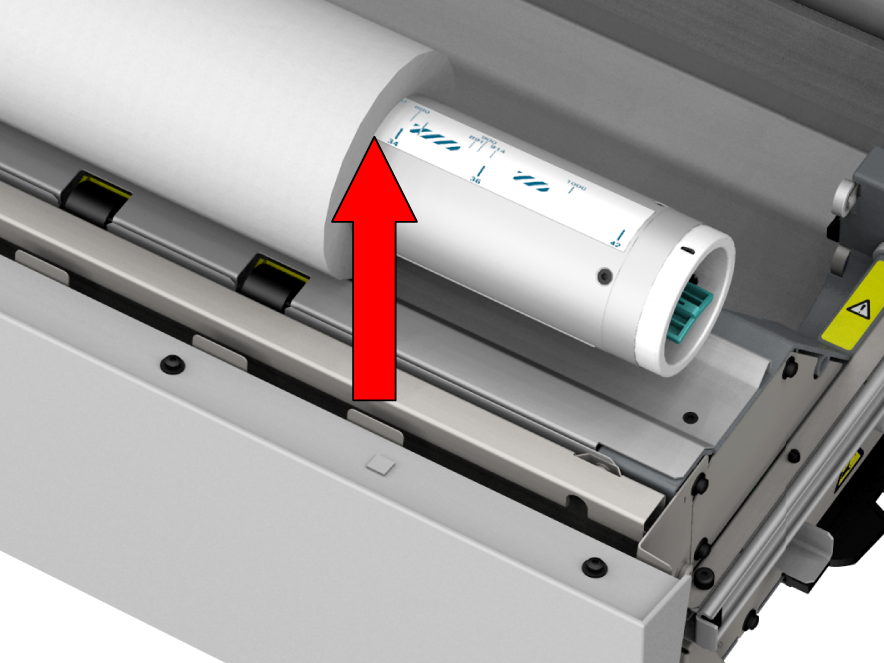 Není-li upřednostňovaná velikost indikována na držáku role, vystřeďte roli na držáku role. Přesvědčte se, že role není vlevo a vpravo vyrovnána s pruhovanými plochami. Uvolněte páčku blokovacího mechanismu.