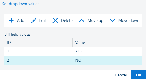 Valitse kohdasta Tyyppi[Pudotusvalikko] ja valitse sitten [Määrittele arvot] . Näyttöön avautuu valintaikkuna, jossa voit luoda Laskutus-arvot