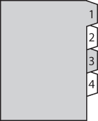 Legen Sie das Registerblattpapier in richtiger Reihenfolge mit der zu bedruckenden Seite nach oben ein, mit dem Register auf der rechten Seite des Fachs, in: