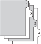 Registerblattpapier in richtiger Reihenfolge und Registerblattpapier in umgekehrter ReihenfolgeDie folgende Tabelle zeigt die Ausrichtung von Registerblattpapier im Papiermodul an.