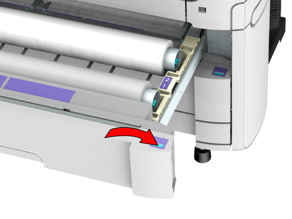 Чтобы уменьшить нагрузку на спину, рекомендуется загружать рулоны носителя форматов А0 или Е в положение 1, а рулоны А2 или С — в положение 2.