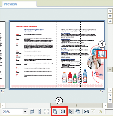 . The preview displays the page folded.Move the cursor in the preview to the right side of the folded page and click the blue arrow.