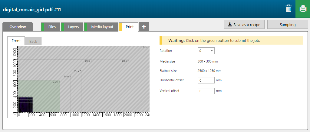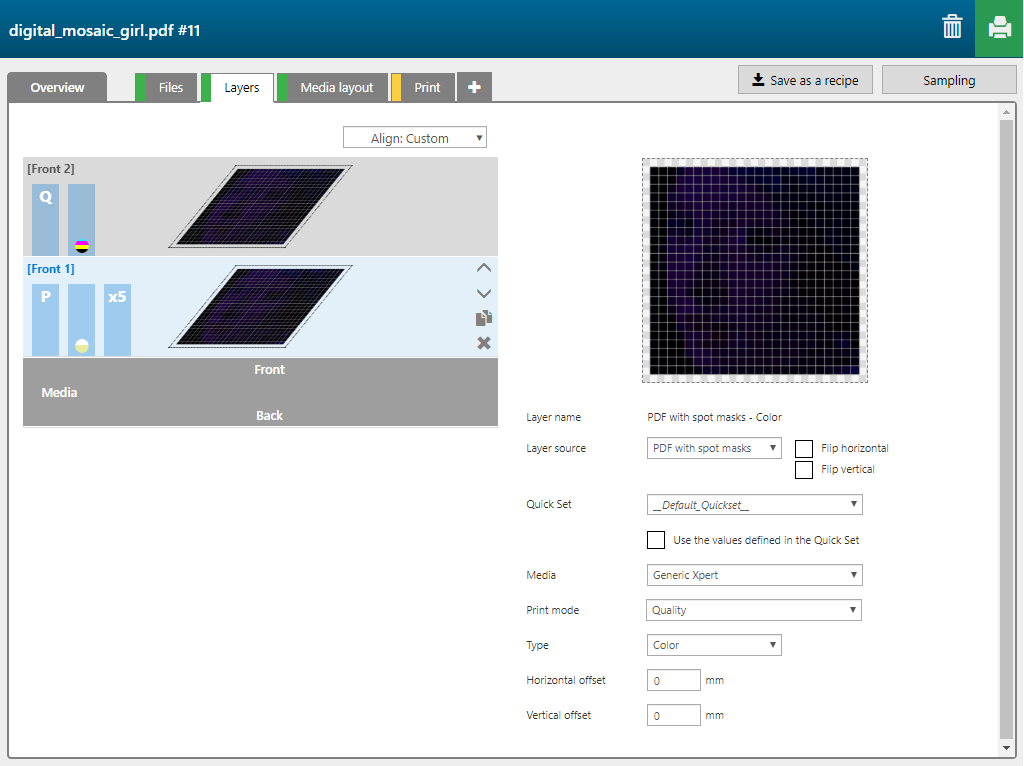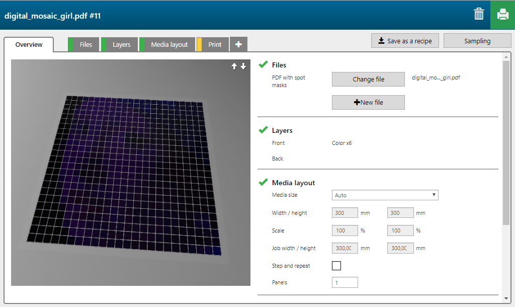 The 'Digital mosiac' recipe contains 6 layers, printed on the front side of the media.