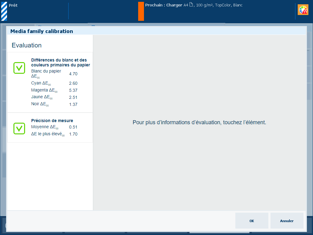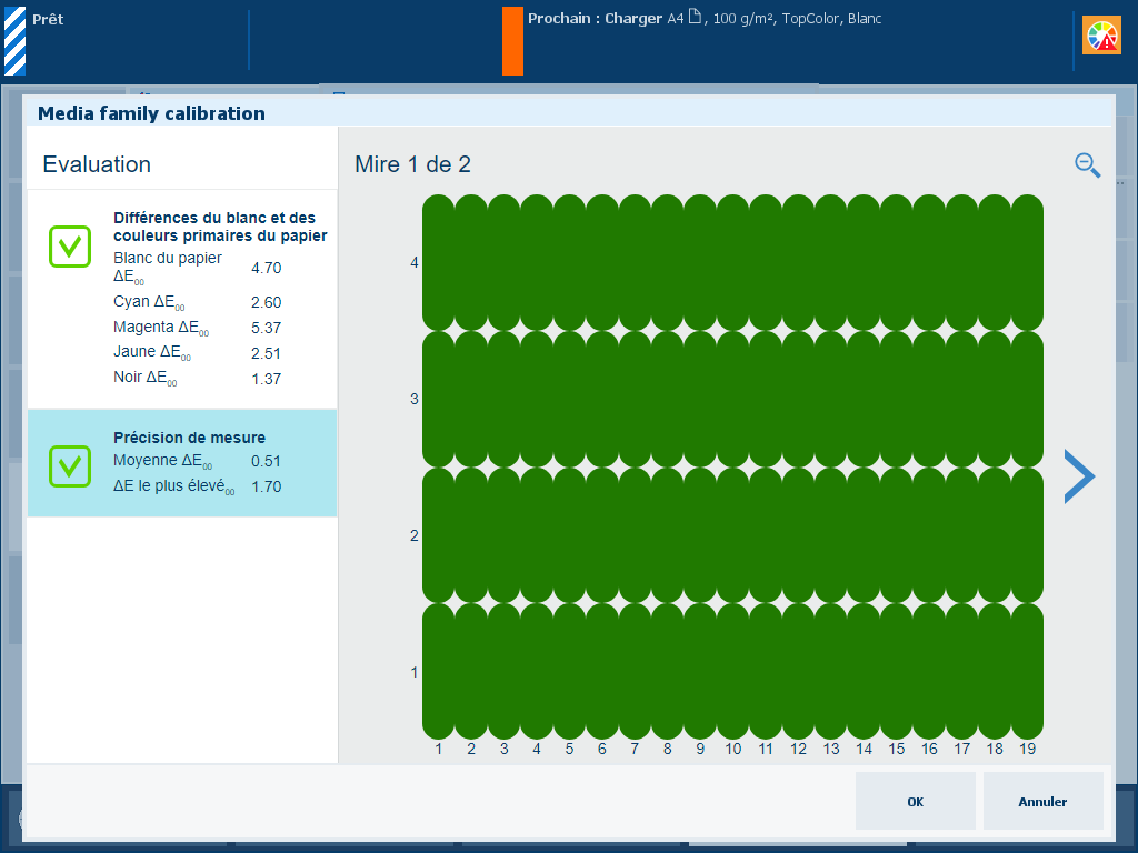 Le but de l’étalonnage de la famille de supports est d’obtenir une qualité de couleur constante dans le temps pour les supports de la même famille de supports.