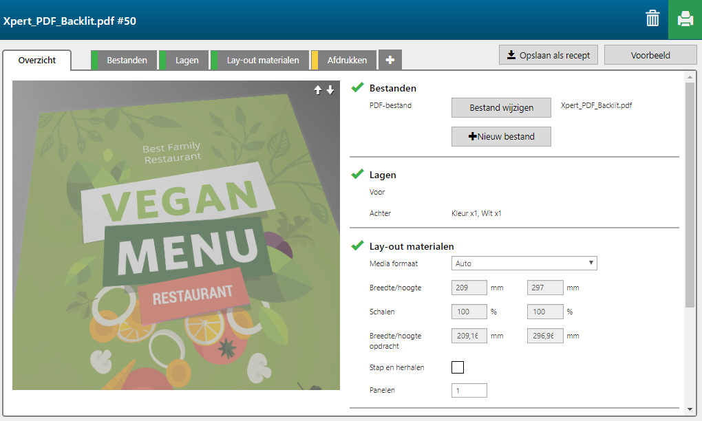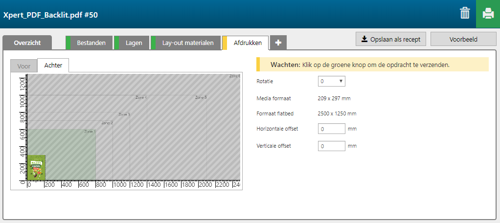 Het [Achterverlichting] recept bevat 2 lagen, op de achterzijde van het materiaal geprint.