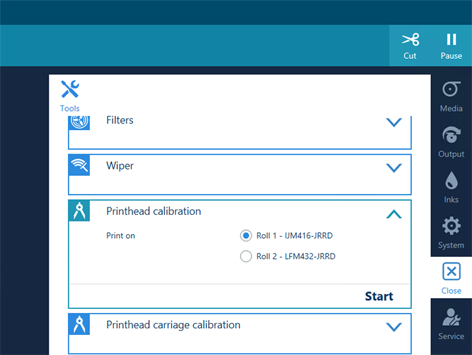 Kalibraci tiskové hlavy můžete provést jen, když tisknete bez navíjení. Více informací viz Tisk bez navíjení.