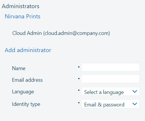Durante la creazione di un nuovo tenant, è anche necessario fornire almeno un account amministratore.