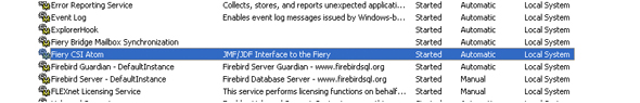 Käynnistä palvelu "Fiery CSI Atom" uudelleen.