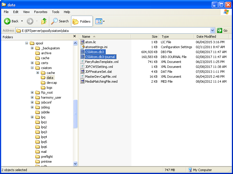 Andare alla cartella "EFI\server\spool\csiatom\data" ed eliminare il database e il relativo journal: "CSIAtom.db3" e "CSIAtom.db3-journal".