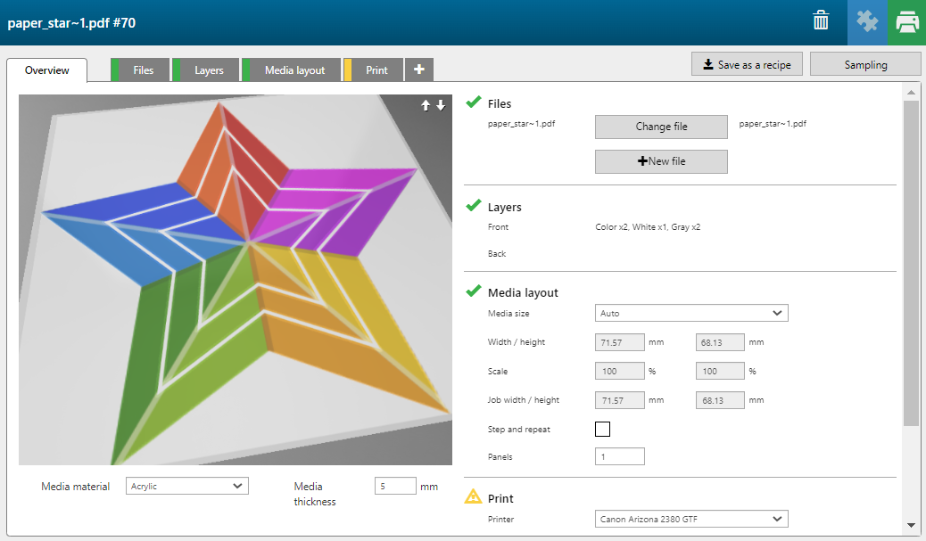 In diesem Beispiel erstellen wir einen Druckauftrag auf transparentem Material, das auf beiden Seiten sichtbar sein wird. Weiß wird verwendet, um sicherzustellen, dass die andere Seite nicht durchscheint.