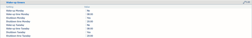 Section [Horloges de réveil] Indiquez pour chaque jour si un réveil automatique se produit.
