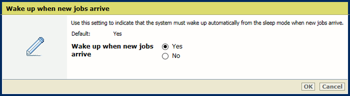 Utilisez le paramètre [Réveil lorsque de nouveaux travaux arrivent] pour indiquer si l’imprimante doit sortir du mode veille pour un nouveau travail.