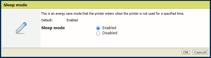Use the [Energy level during sleep mode] setting to define the energy level. The printer leaves the sleep mode faster at a higher energy level.