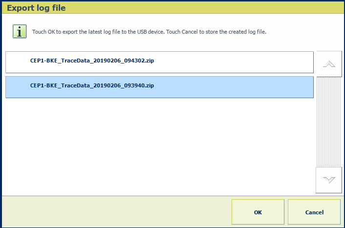 Velg loggfilTrykk på [OK] for å eksportere loggfilen til USB-enheten.