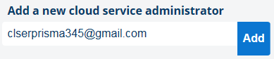 在 [Add a new cloud service administrator] 字段中输入 Microsoft 或 Google 帐户的电子邮件地址。