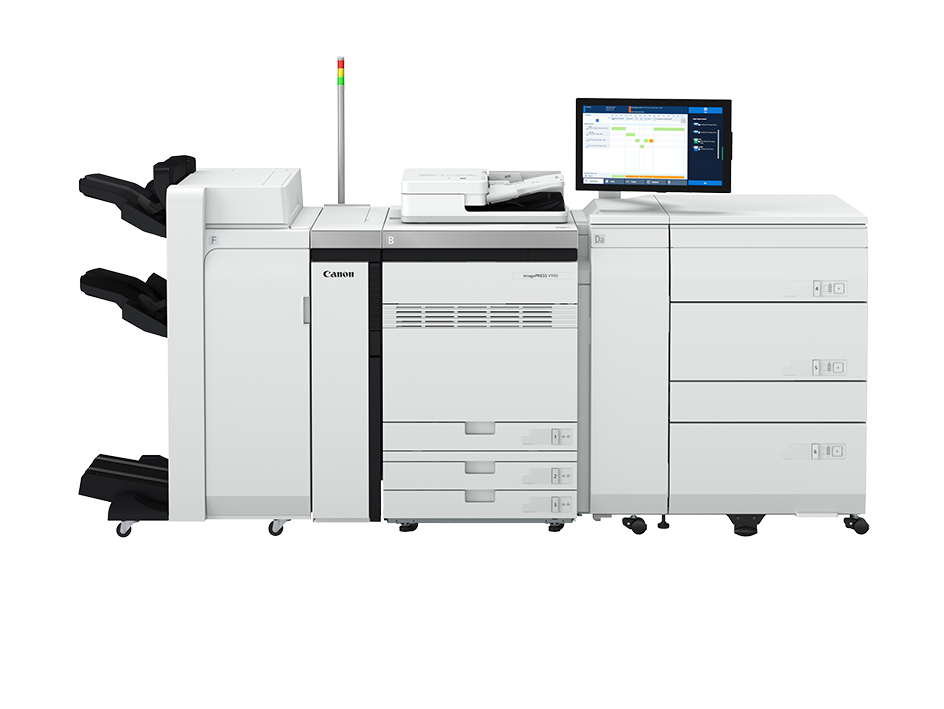 The imagePRESS V900 series is a sheet-fed digital press printing at 90 ipm, 80 ipm, or 70 ipm. The printer platform supports a wide range of media and has a versatile in-line finishing portfolio.