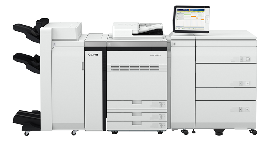 imagePRESS V900 series to arkuszowa, cyfrowa maszyna drukarska drukująca z prędkością 90 ipm, 80 ipm lub 70 ipm. Platforma drukarki obsługuje szeroki asortyment nośników i ma wbudowany zestaw narzędzi do edycji końcowej.